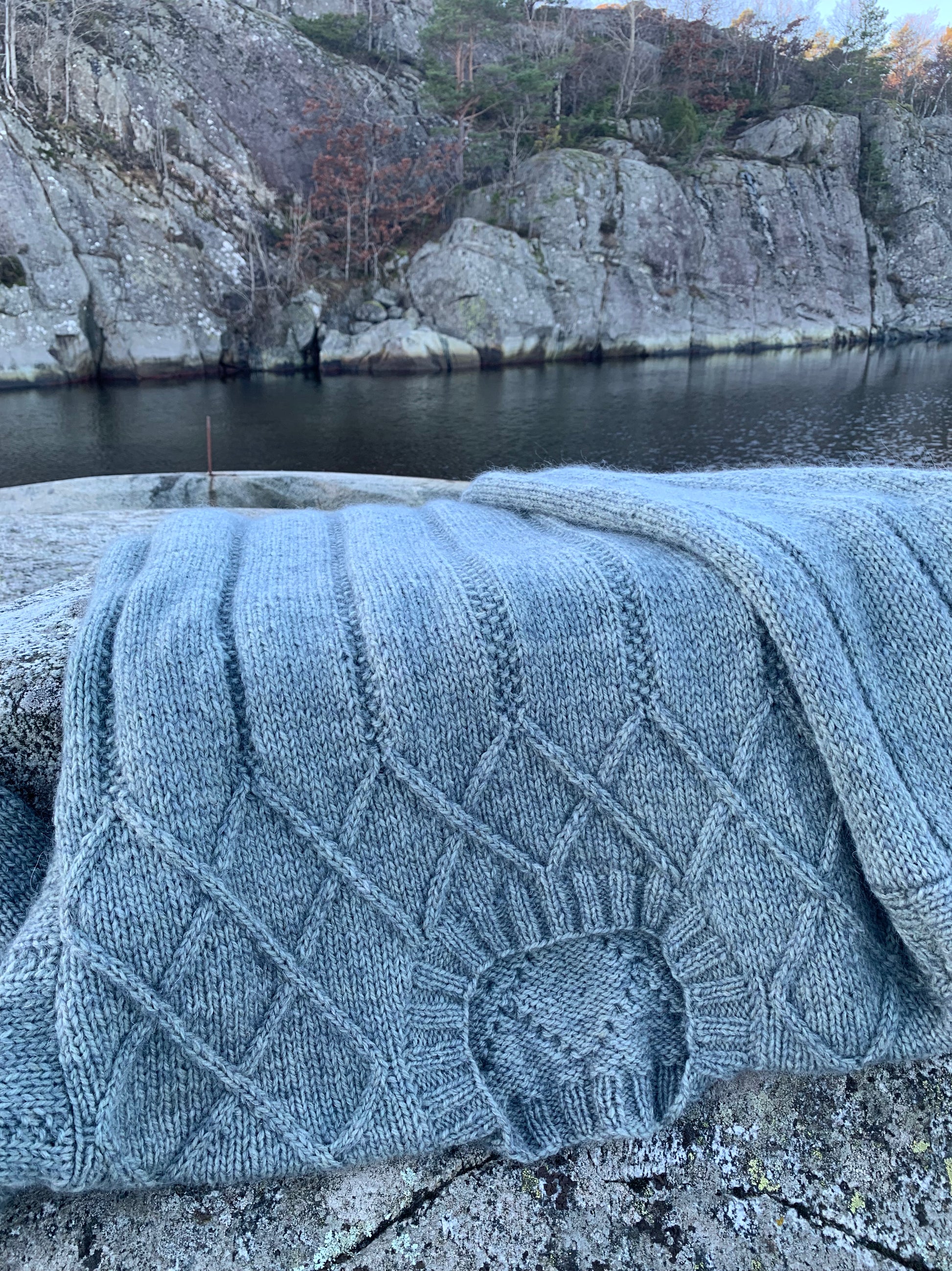 Svaberg genser er håndstrikket i Norge.