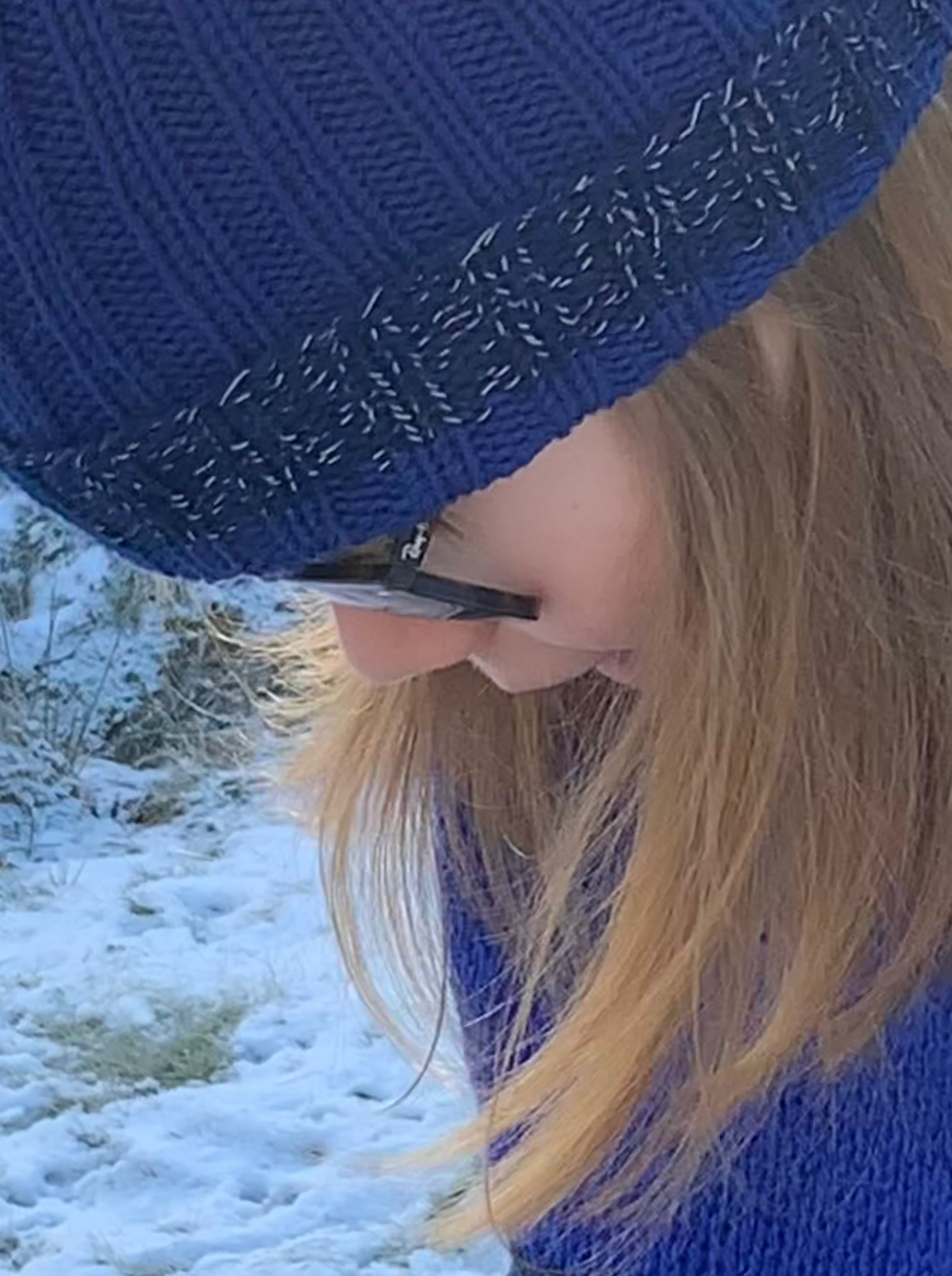 Denne lua er strikket med Reflex farge: marine 426 og med Vesleull, farge marine 5600.