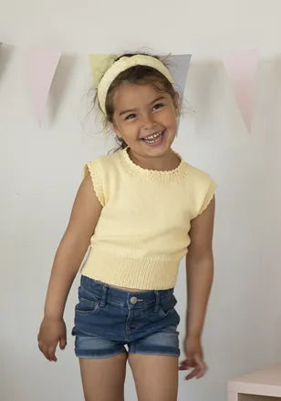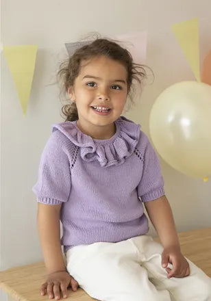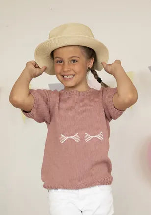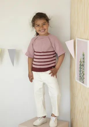 7. Pinup T-skjorte, bamboo, str. 2;4;6;8;10;12 år, garnforbruk: farge A 2;2;3;3;4;5, farge B 2;2;3;3;4;5 nøster